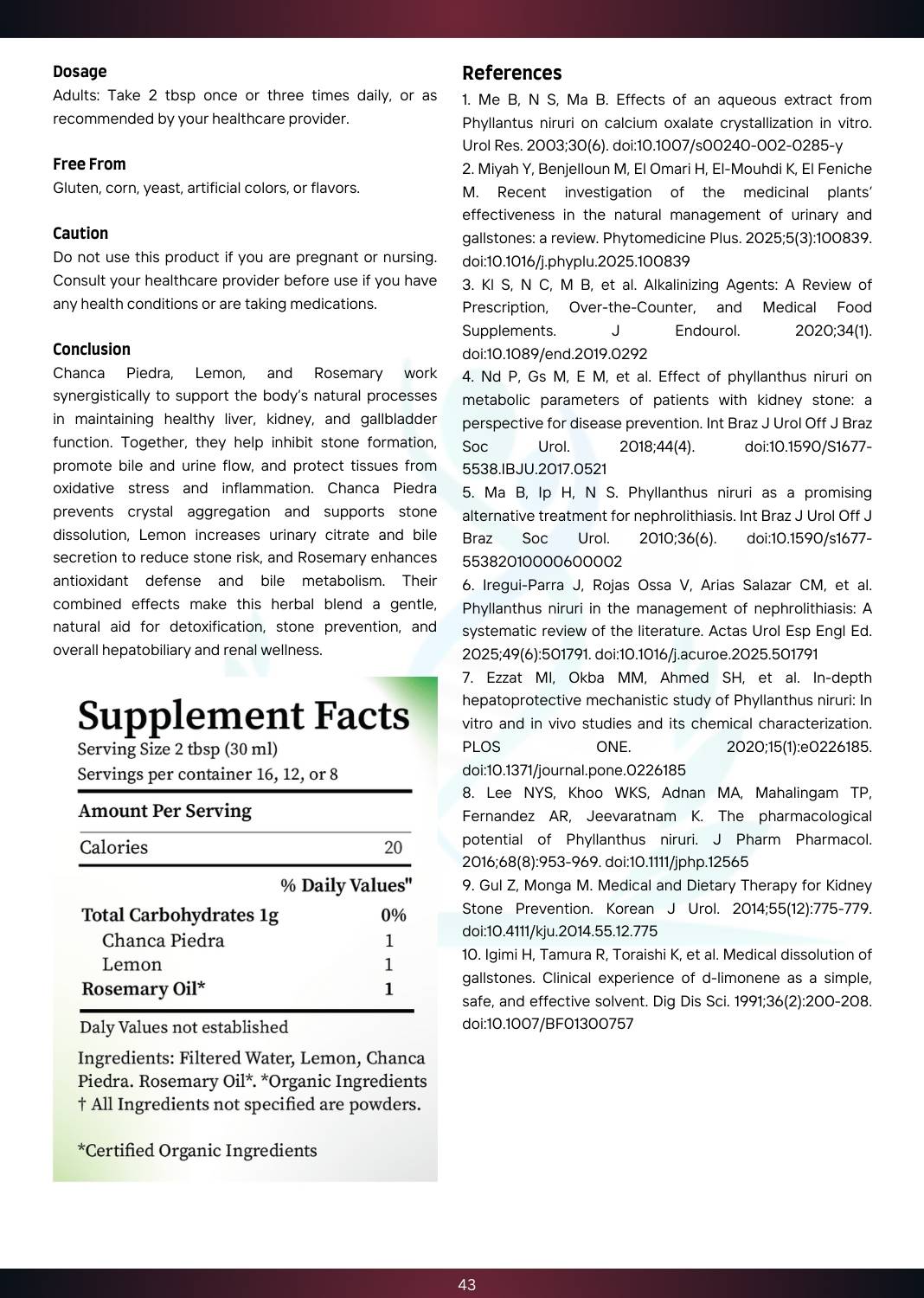 - Kidney Stone Support: Chanca Piedra is well-known for its ability to break down and help pass kidney stones. Its natural alkalizing effect may help prevent the formation of acidic stones and support healthy kidney function.