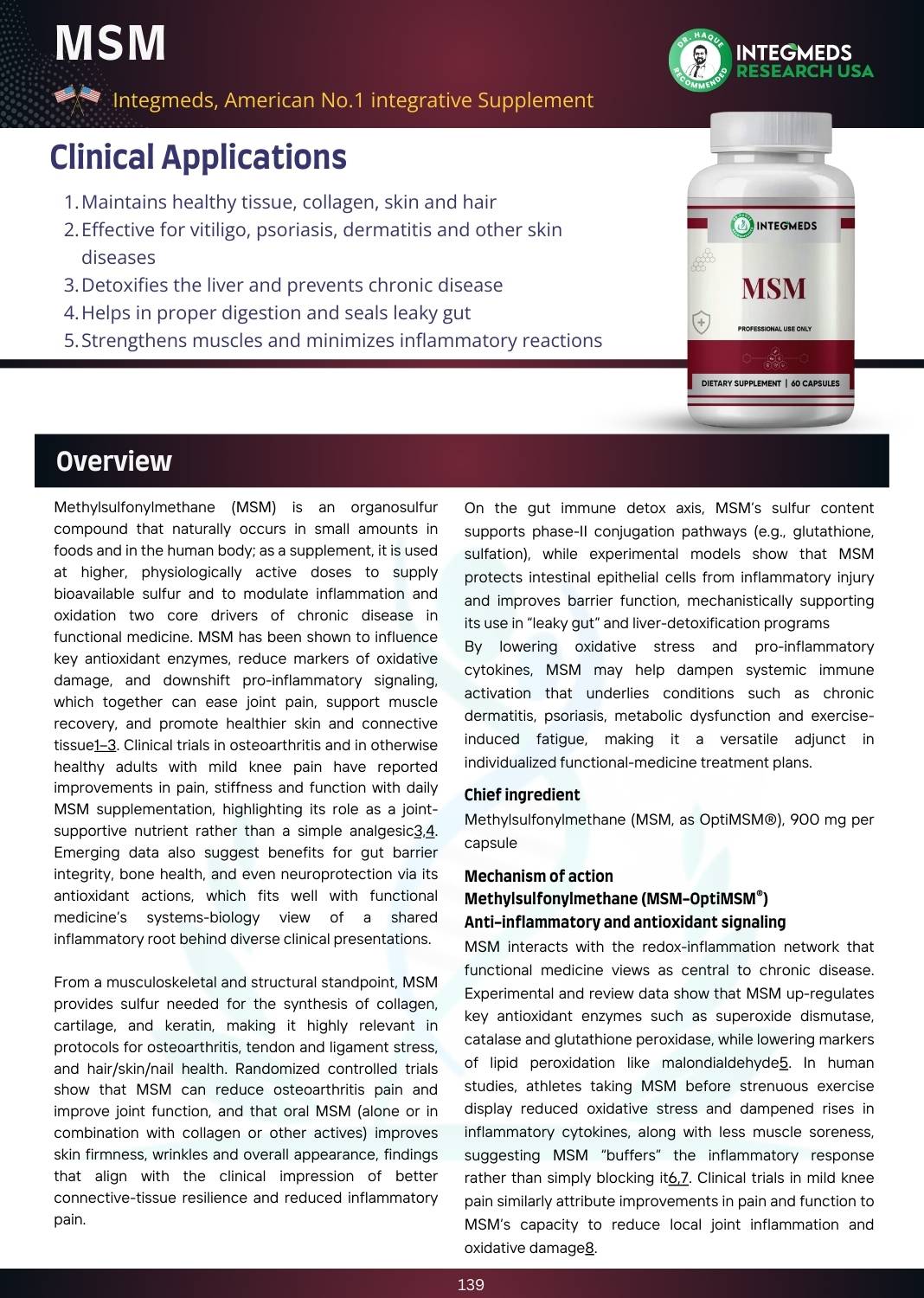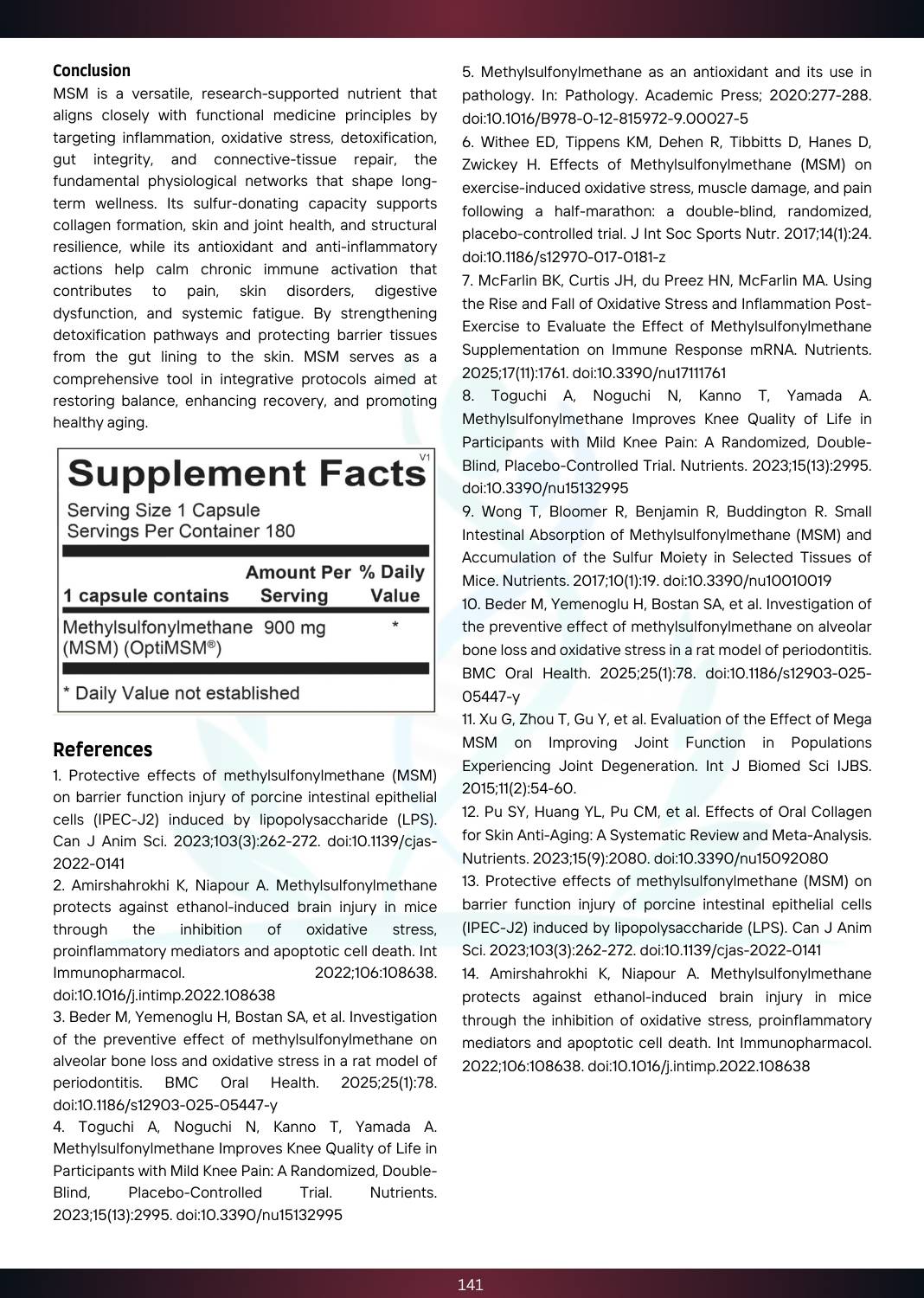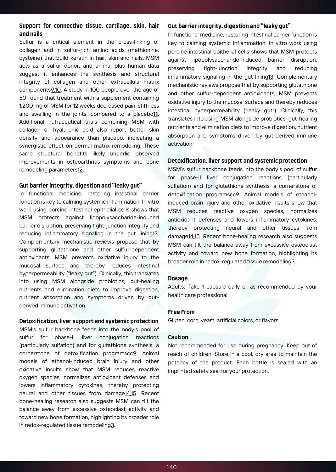 MSM (Methylsulfonylmethane) is a valuable sulfur compound known for supporting collagen production, joint health, and gut integrity. It plays a crucial role in strengthening connective tissues and enhancing antioxidant defenses, making it a great choice for overall well-being.