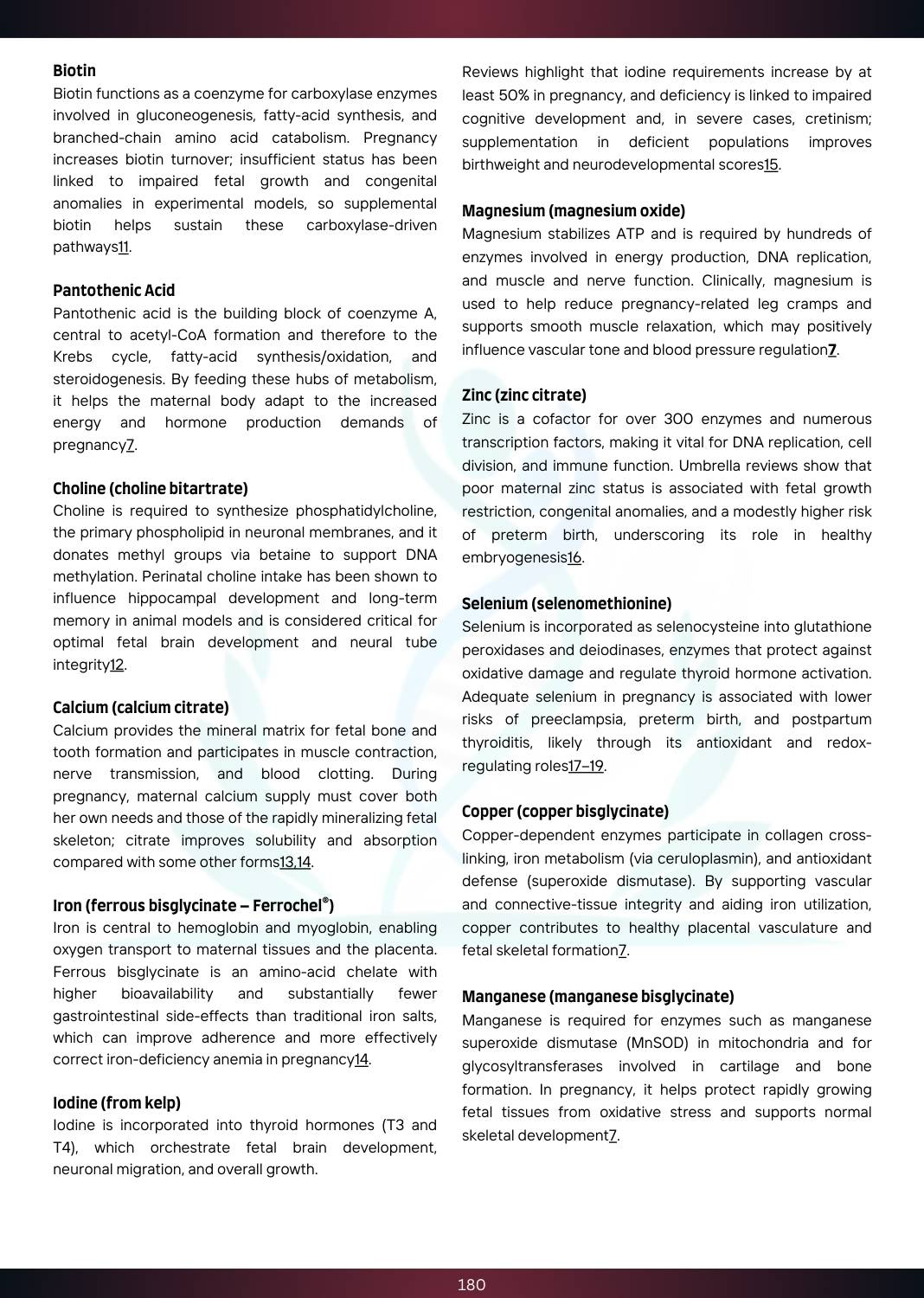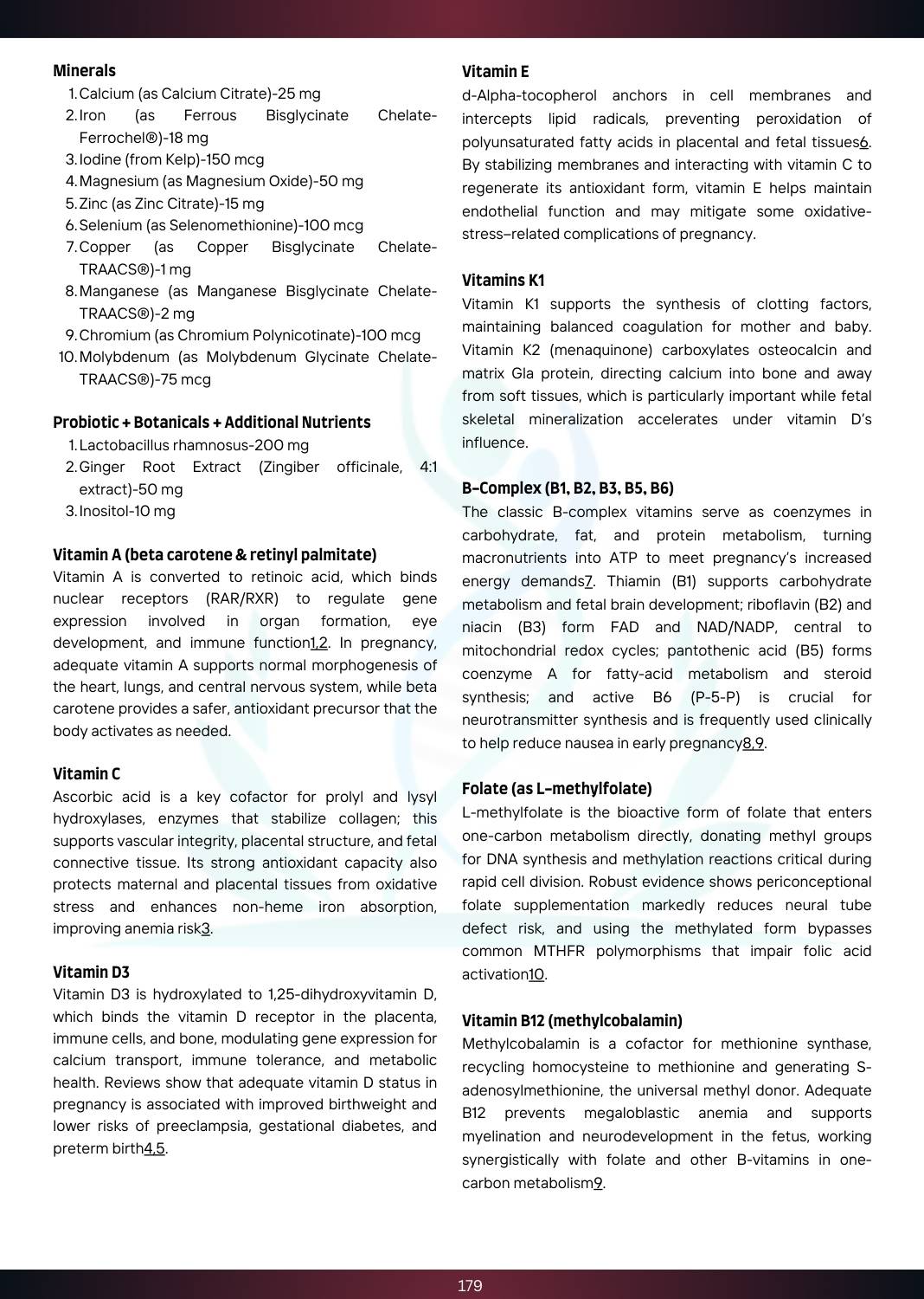 - Minerals: Calcium, Iron, Magnesium, Zinc, Selenium, Copper, Manganese, Chromium, Molybdenum, Iodine