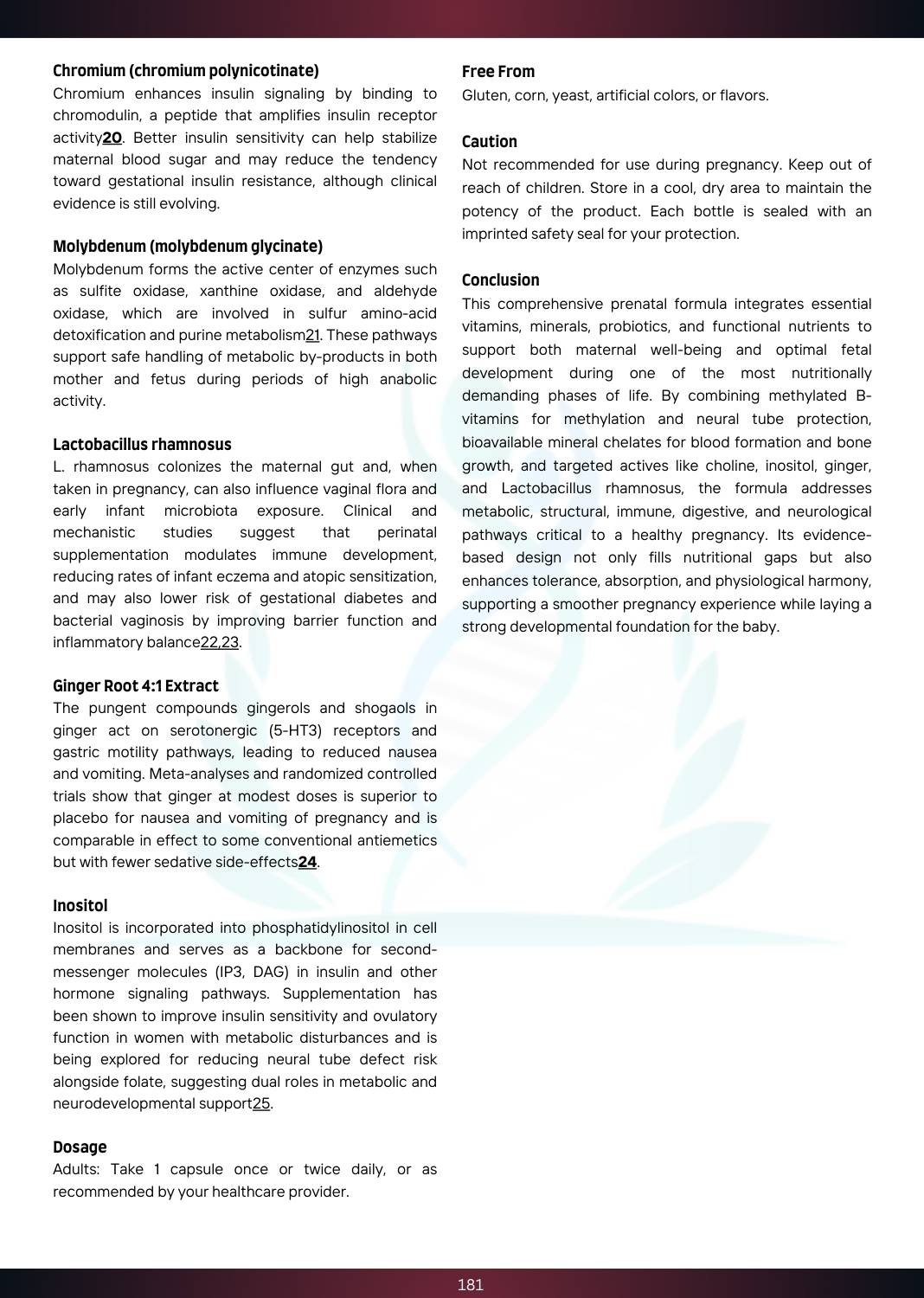 - Special Additions: Lactobacillus rhamnosus (200 mg), Ginger Root Extract, Choline, Inositol