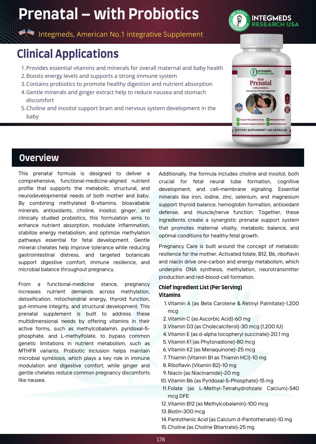 Best Prenatal with Probiotics is a premium dietary supplement specifically formulated to support the nutritional needs of women before, during, and after pregnancy. Made in the USA and recommended by Dr. Haque, this advanced formula combines essential vitamins, minerals, probiotics, and herbal extracts to promote optimal health for both mother and baby.
